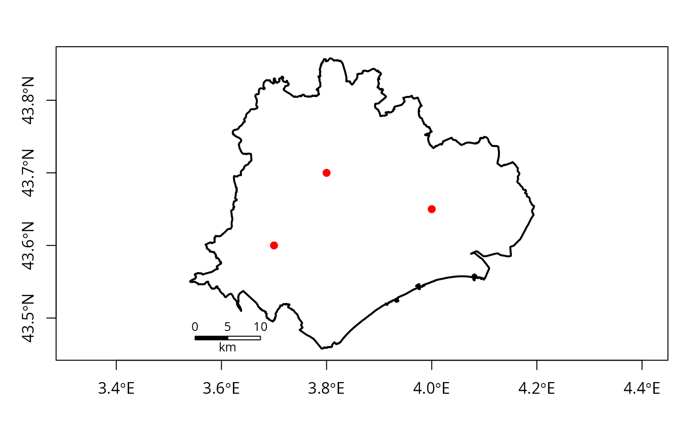 data.frame(x = c(3.7, 3.8, 4.0), y = c(43.6, 43.7, 43.65)),